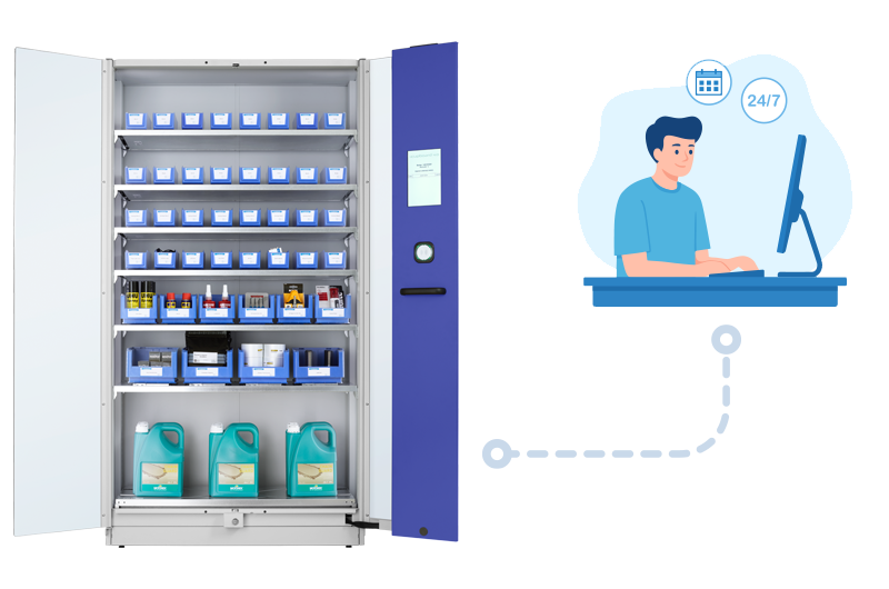 Ob bei Schichtarbeit oder in der Abwesenheit des Magaziners – mit MasterVend steht das benötigte Material 24/7 griffbereit zur Verfügung.